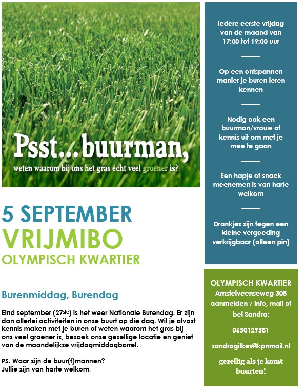 • Buurtborrel (laatste woensdag van de maand)