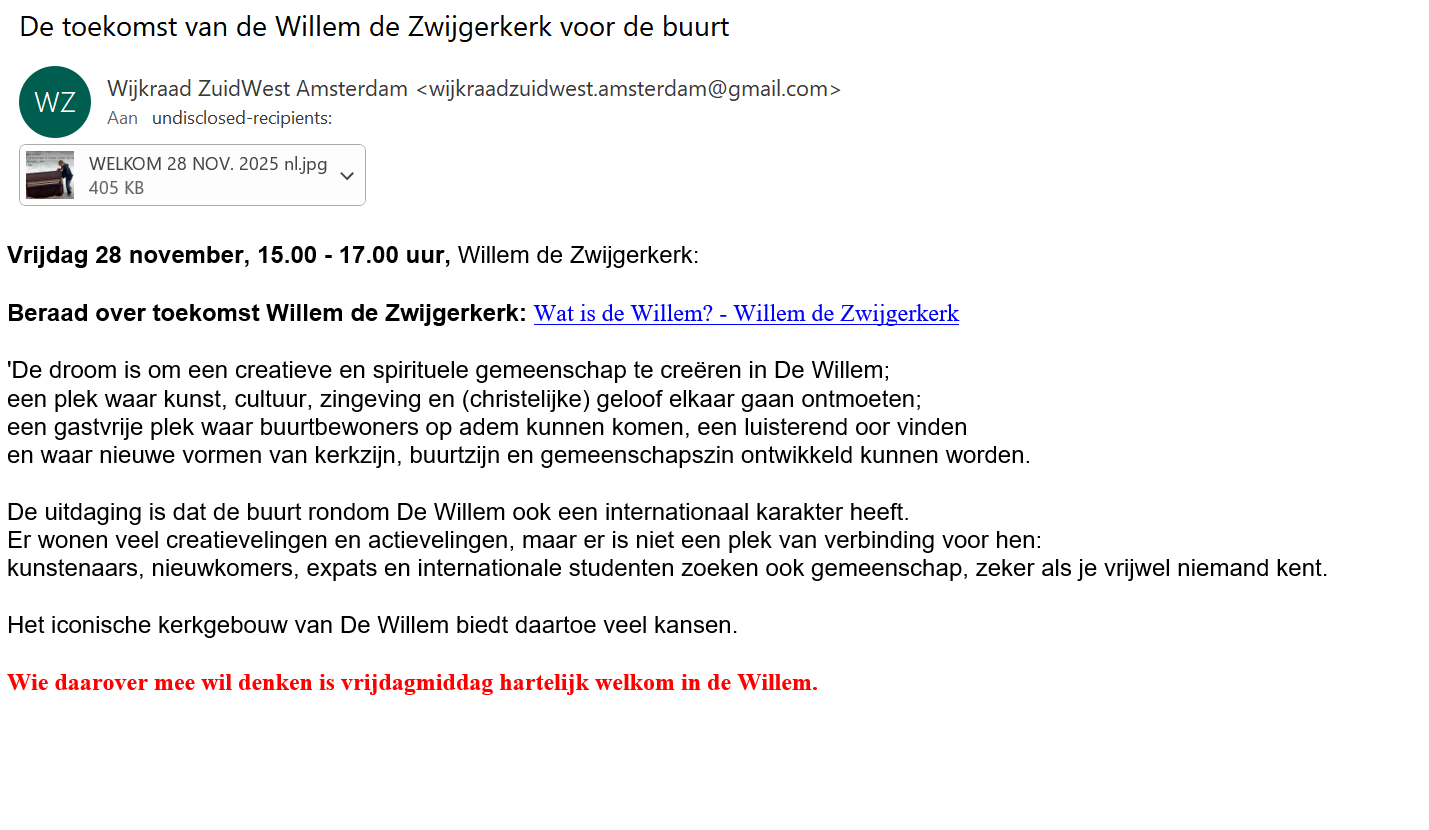 Beraad over toekomst Willem de Zwijgerkerk: Wat is de Willem? - Willem de Zwijgerkerk