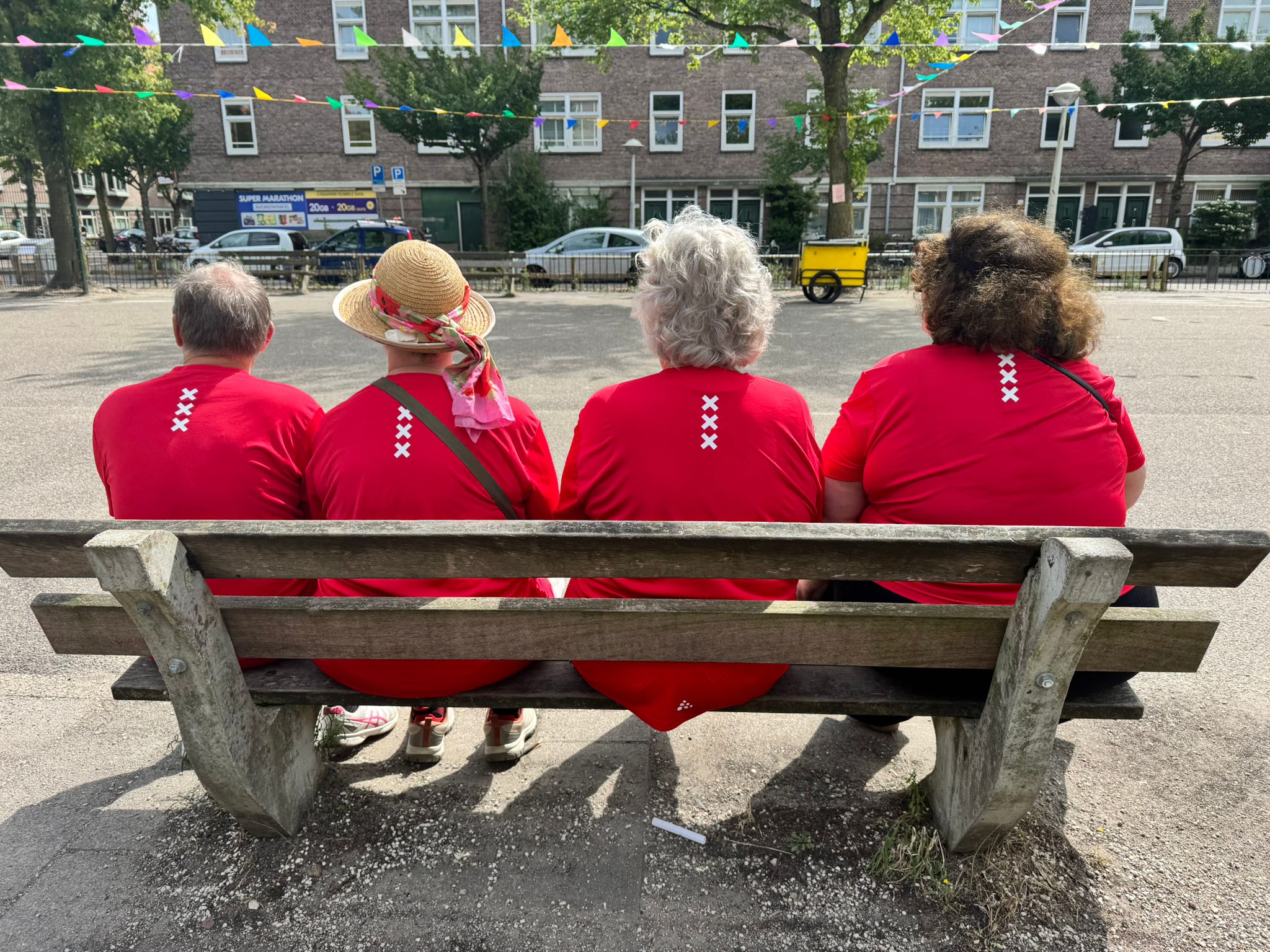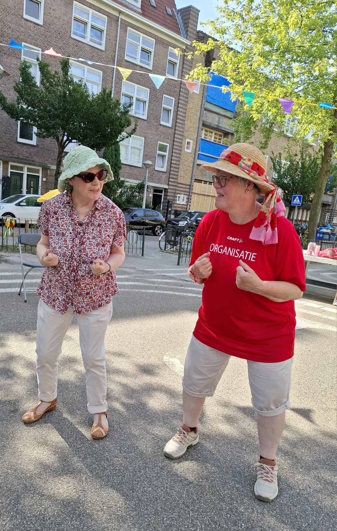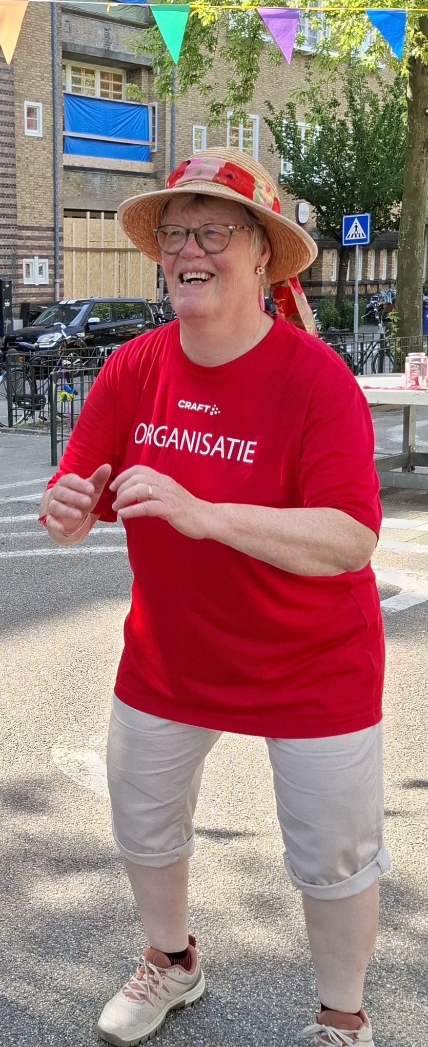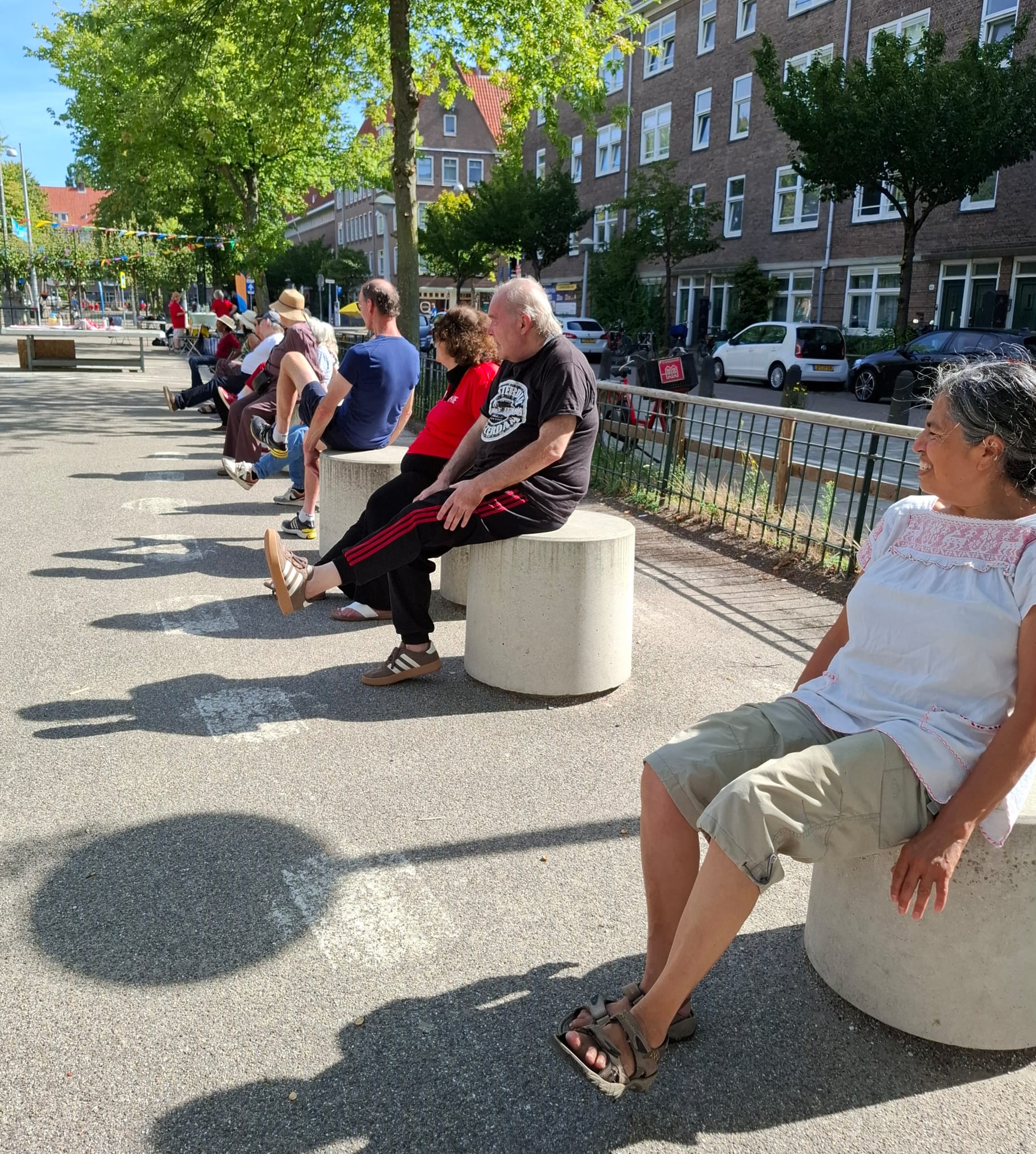 Rond 10 uur kwamen de eerste mensen. Iets na 1/2 elf arriveerde de docent en konden we met het bewegen beginnen. Het was lekker druk en door de warmte deden we rustige oefeningen. Na de warming up een stukje verplaatst en op stoelen en kolommen hebben we een soort stoelgym gedaan.