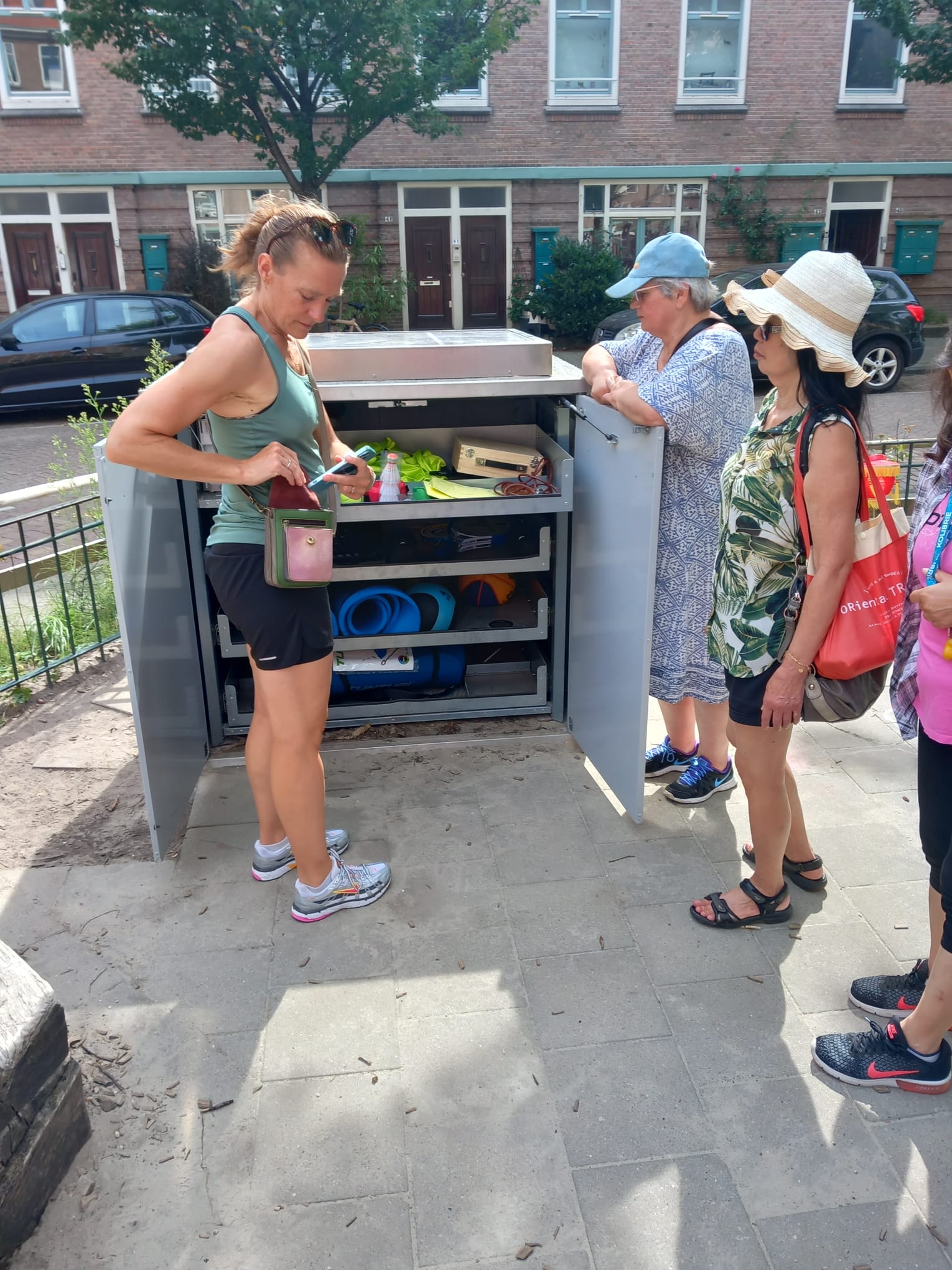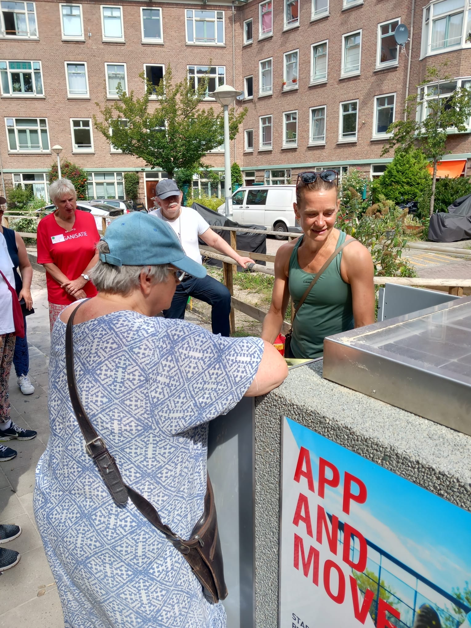 Na afloop bleef iedereen lekker kletsen en rond 12 uur zijn we met een redelijke flinke groep naar de Spotbox op de onevenkant van het plein gegaan. Daar heeft Lotte van Combiwel een uitleg gegeven.