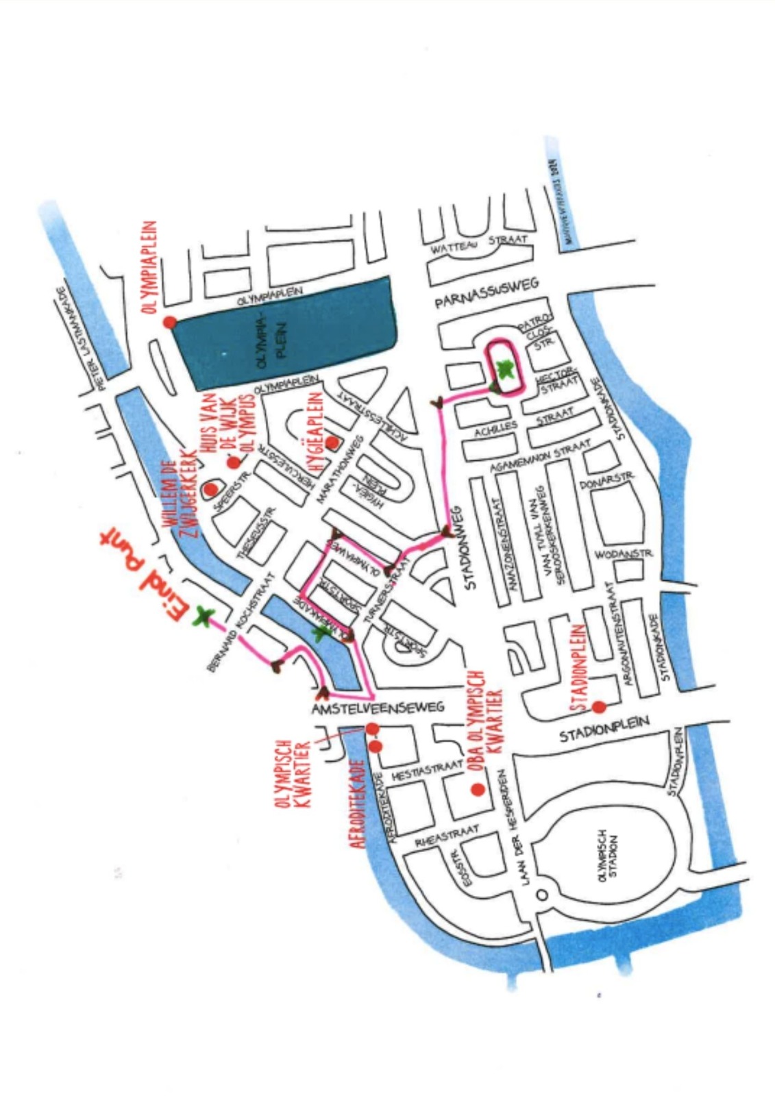 Tussenstop: ca. 13.45 uur – Olympiakade (bij de bankjes aan het water)