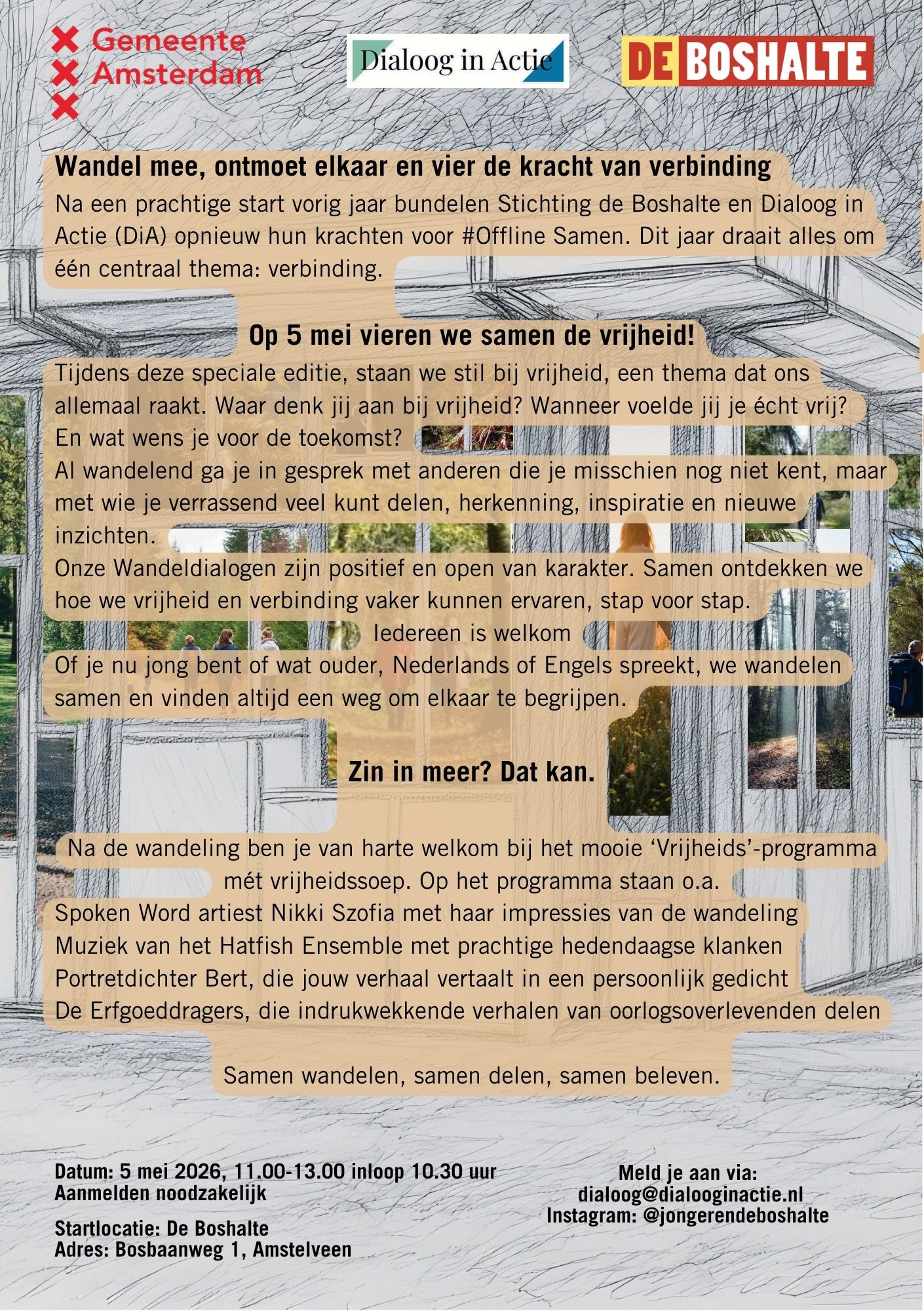 Deze wandeldialoog sluit aan bij het 5-mei programma van onze partner stichting de Boshalte.