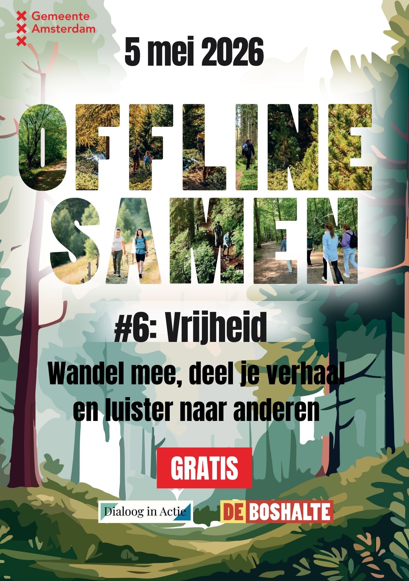 Na een mooie start vorig jaar trekken Stichting de Boshalte en Dialoog in Actie (DiA) opnieuw samen op met de reeks Offline Samen. Dit jaar staat alles in het teken van Verbinding. Dit thema is geen toeval. Jongeren van Stichting de Boshalte brachten samen in kaart wat er leeft, van sociale bubbels en polarisatie tot eenzaamheid en mentale gezondheid, en ontdekten een gemeenschappelijke noemer: de behoefte aan verbinding. Generatiebreed en herkenbaar voor jong en oud. Dit resulteerde in vijf wandeldialogen voor 2026.