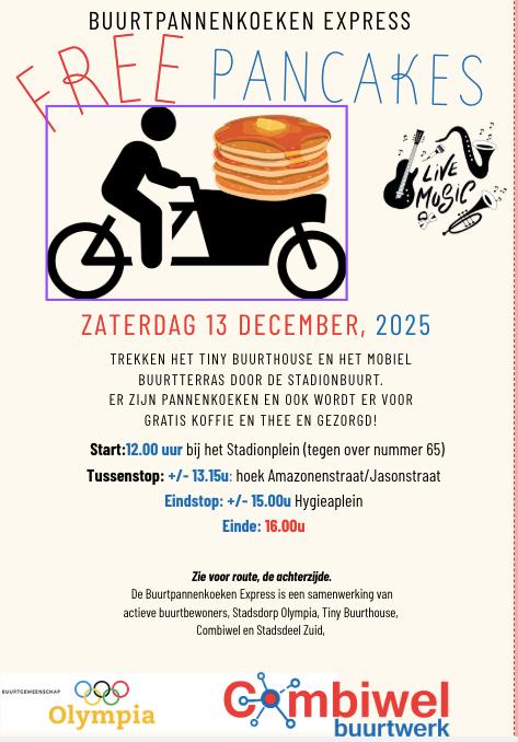 Op de zaterdagen 13 december 2025, 14 februari 2026 en 21 maart 2026 fietst het Tiny Buurthouse door de Stadionbuurt.